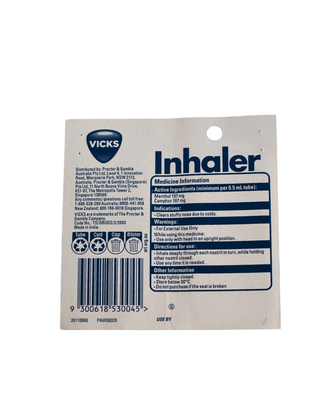Economical, compact and effective nasal congestion relief, Vicks® Inhaler has been giving fast and temporary “mobile” relief from nasal clogging due to colds, hay fever or upper respiratory allergy since 1951.