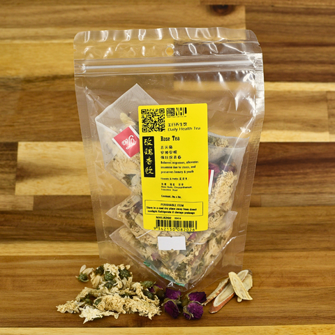 The tea alleviates stress-related symptoms, such as migraines and insomnia, while promoting beauty and youth. Its combination of herbs helps relax the body, improve circulation, and calm the mind and skin.