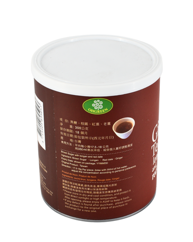 Storage Avoid direct sunlight. Keep in a cool and dry place. Ingredients Ginger Brown Sugar Longan Red Dates 储存 避免日光直接照射,放置於陰涼乾燥處。 成分 黑糖 桂圓 紅棗 老薑