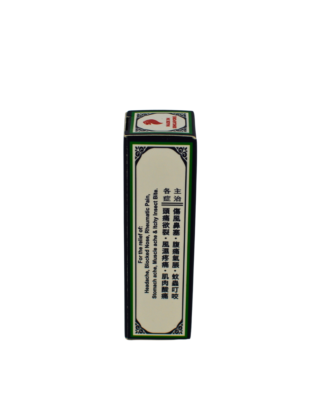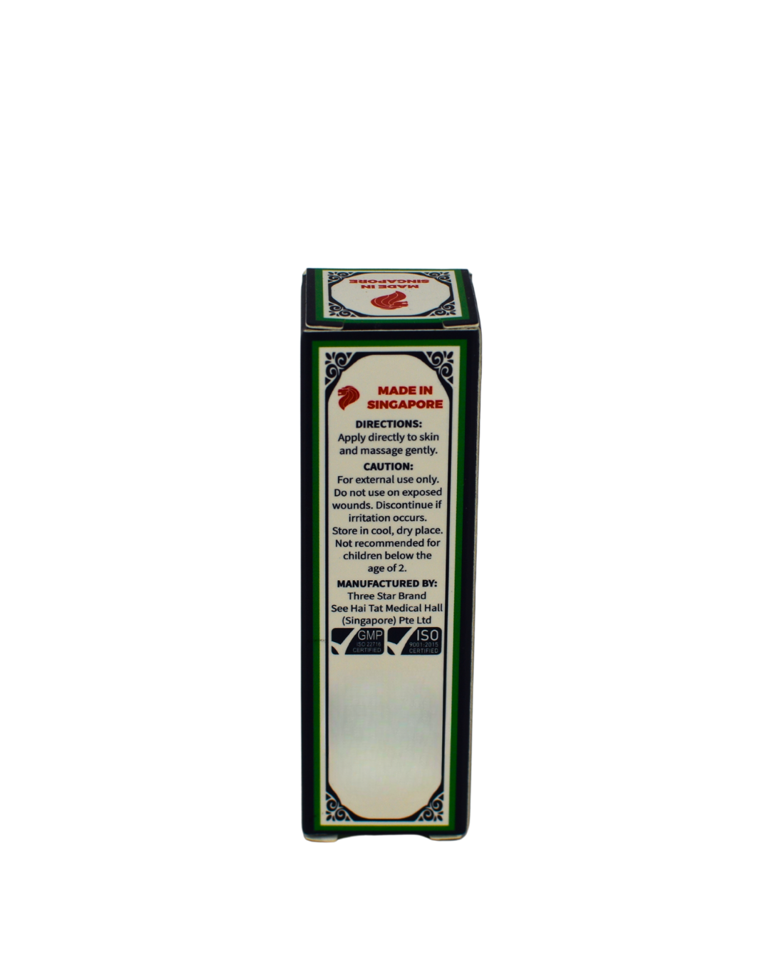 Introduced in 1937, Three Star Brand Traditional Medicated Oil is a trusted product that is a blend of menthol crystals, peppermint oil, eucalyptus oil, camphor and wintergreen oil. It is used to relieve headaches, motion sickness, blocked nose, stomachaches, muscle aches and joint pains.