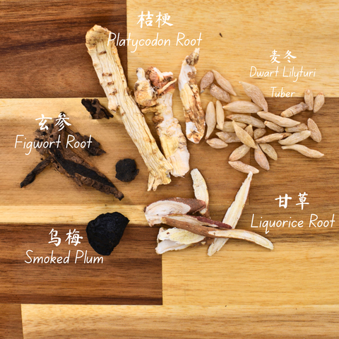 用于治疗与呼吸问题、喉咙痛和阴虚有关的疾病。诸药合用,具有清热、滋阴、润喉的功效,可有效治疗干咳、咽痛、炎症等症状。